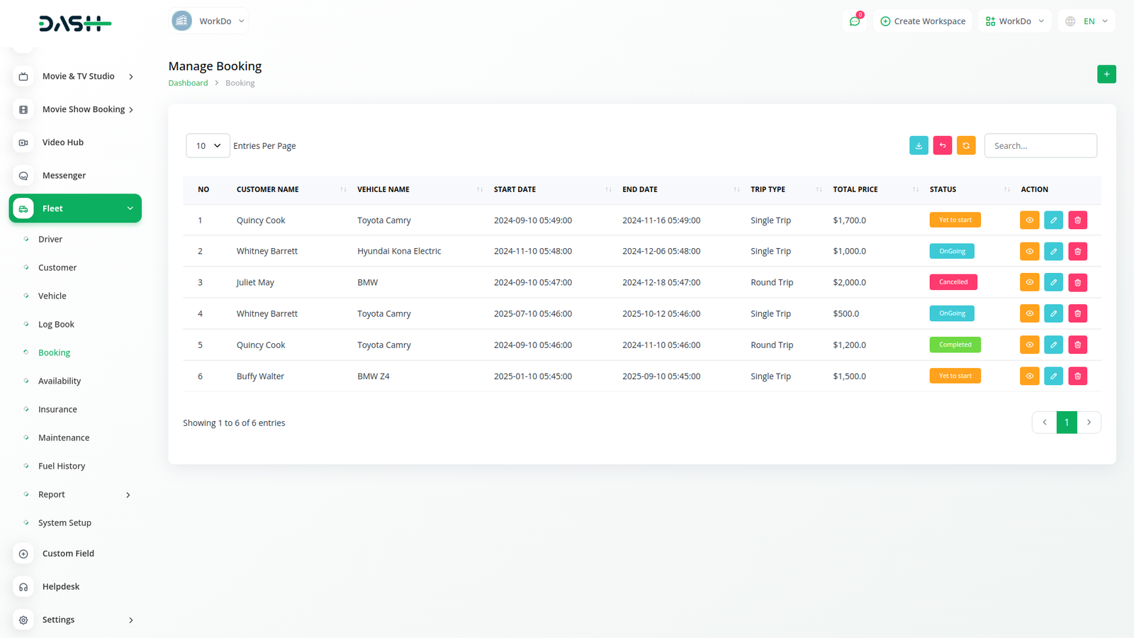 Fleet gives users deep insight into their maintenance needs with detailed Vehicle Bookings, Vehicles,Maintenance,insurance , dashboards